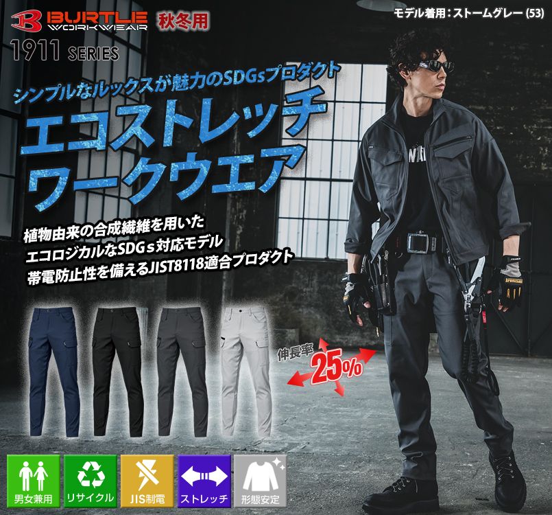 素材 | 素材/エコストレッチダブルツイル(伸長率25%以上)/エコディア®(東レ)、制電ケア設計 混率/ポリエステル100%(植物由来合成繊維21%含) |