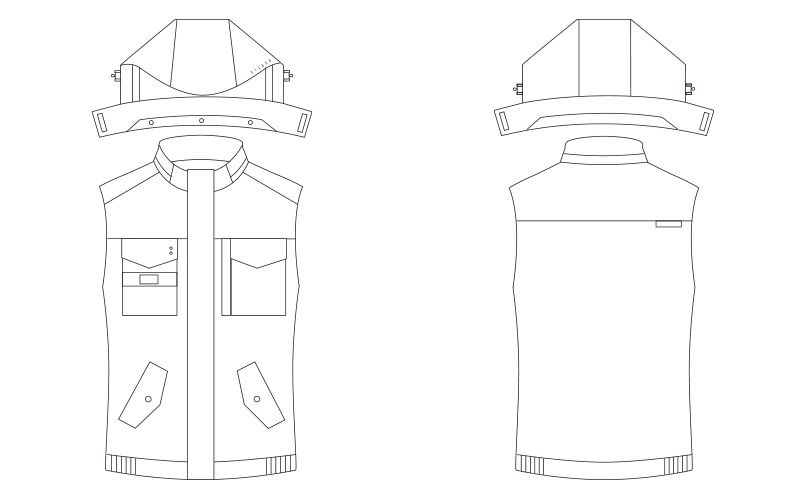 仕様 | 大型フードスピンドル付き(ボタン止め脱着仕様)、フードプリント、フード脱着、レベルブックiPhone収納ファスナーポケット(左)、胸ペン差し(左)、内ポケット(左)、フラップ付き両脇ウォームポケット、カフスアジャスター、水抜きメッシュ(ウォッシャブル機能)、撥水加工 |