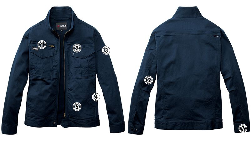 仕様 | レベルブック・トランシーバー収納ファスナーポケット(右)、カフスドットアジャスター、胸ペン差し(左)、袖ペンポケット(左)、袖アームタック、両脇ポケット、内ポケット(左) |