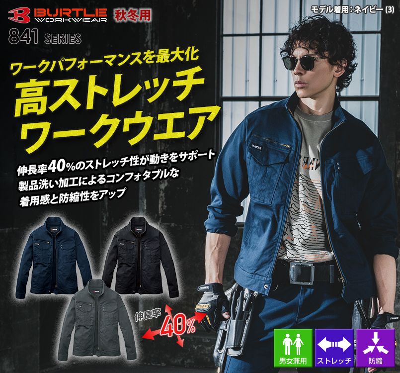 素材 | 素材/ストレッチツイル(伸長率40%)/製品洗い加工 混率/表地:綿98%、ポリウレタン2% |