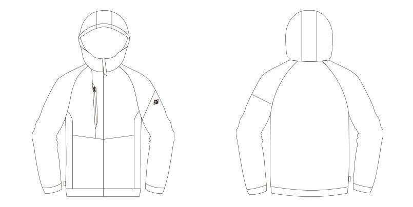 仕様 | フードスピンドル、フードプリント、ダブルジップ仕様、レベルブックiPhone収納ファスナーポケット(右)、袖ペンポケット(左)、両脇ポケット、コーデュラネーム |