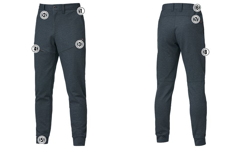 仕様 | コーデュラネーム、長財布・レベルブック・Phone収納ファスナーポケット(右)、Phone収納バックポケット(左右)※着席時スマホが干渉しないポケット、後脇シャーリングゴム仕様、ペン差し・Phone収納ポケット(左)、ツインループ(右前・両脇)、サイドチップ(左)、裾ジョガー仕様 |