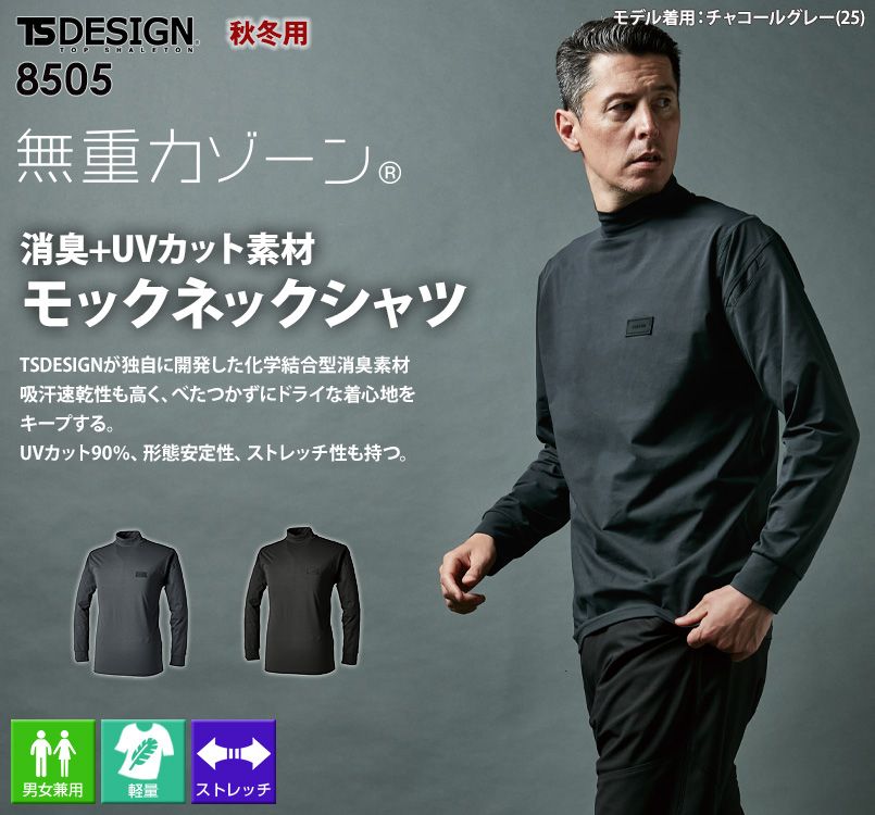 TSDESIGN独自開発の消臭+UVカット素材の高機能モックネックシャツ 8505