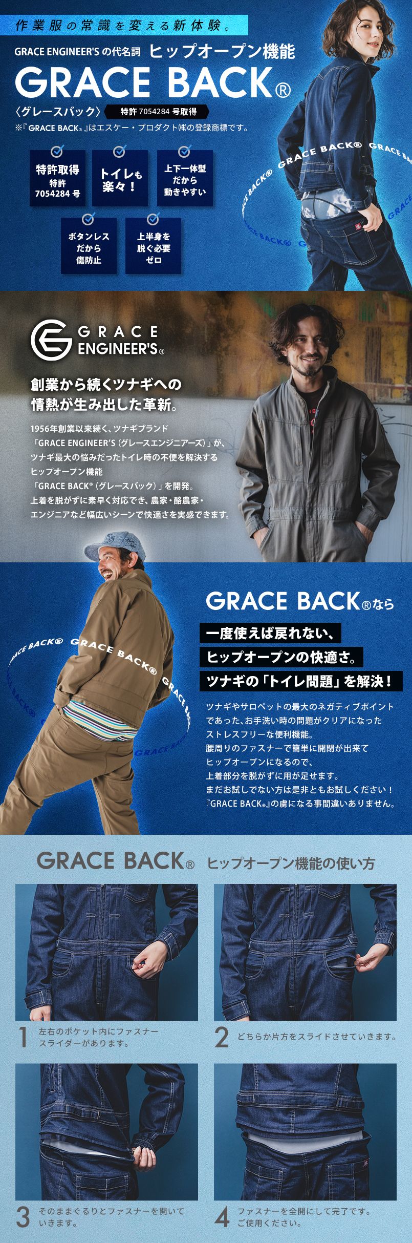 トイレも楽々な【GRACE BACK】ファスナーで簡単に開閉が出来てヒップオープンになるので、上着部分を脱がずに用が足せます。