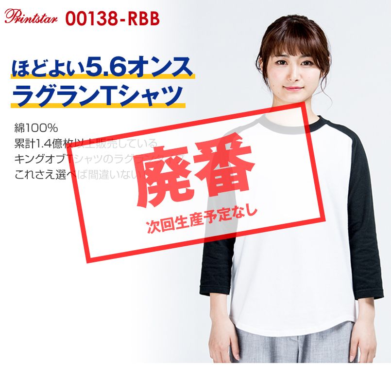 [廃番]ラグランベースボールTシャツ(5.6オンス)[男女兼用]