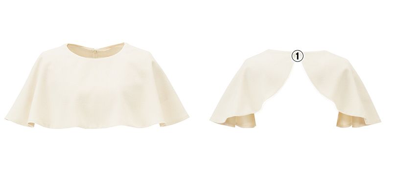 ケープは後ろボタン留め。優雅に広がるラウンドヘムが美しい後ろ姿を演出。