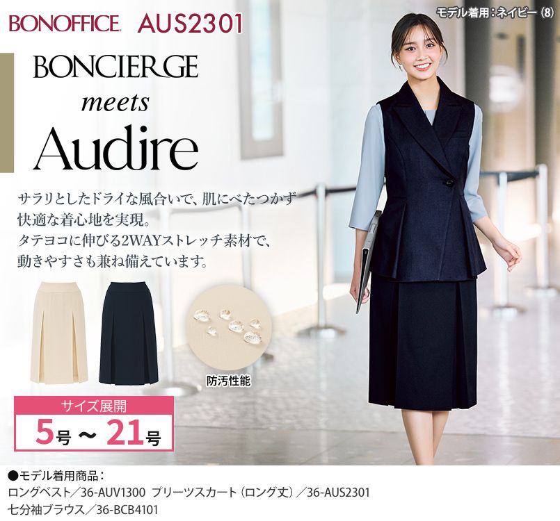 BONMAX AUS2301 [通年]BONCIERGE meets Audire プリーツスカート(ロング丈)[2WAYストレッチ/防汚]