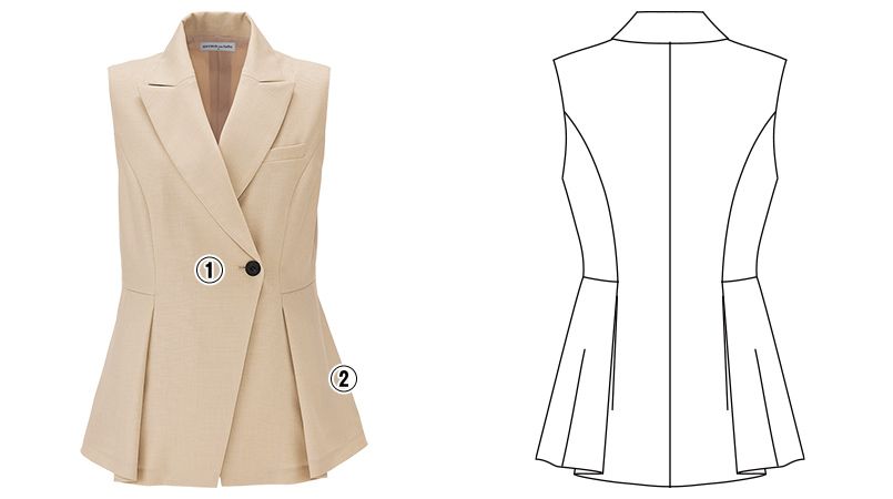 | 仕様 | 左胸箱ポケット、両脇シームポケット、前右側内ポケット |