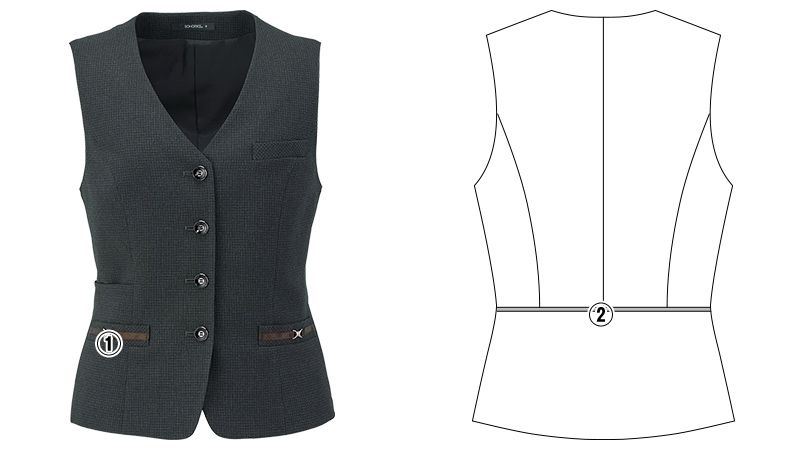 背中に向かって長くなるテールカットで腰まわりをカバー。ウエストのパイピングが腰位置を高く見せます。