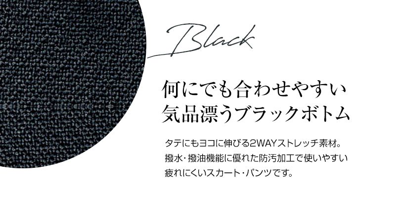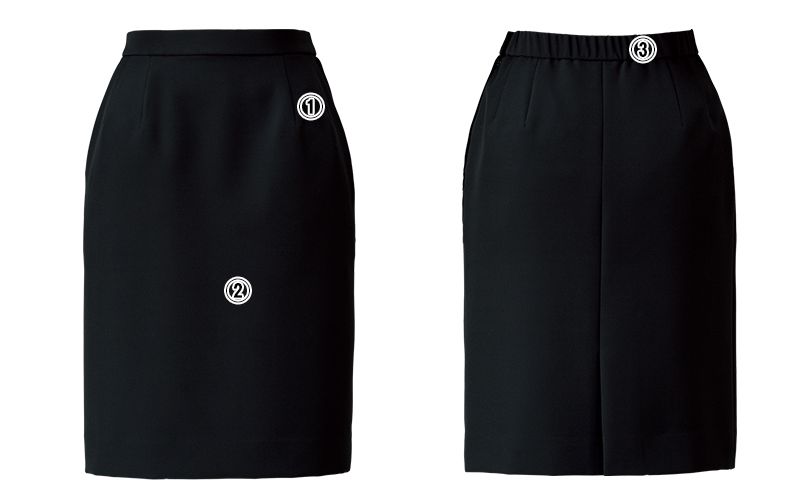 ボンマックス(BONMAX)BCS2107のタイトスカート。季節もシーンもこだわらない幅の広さが魅力。様々なシーンにマッチする幅の広さが魅力のブラックスーツ。タテヨコに伸びる2WAYストレッチや汚れを防ぐ加工でオフィスワークをサポートします。