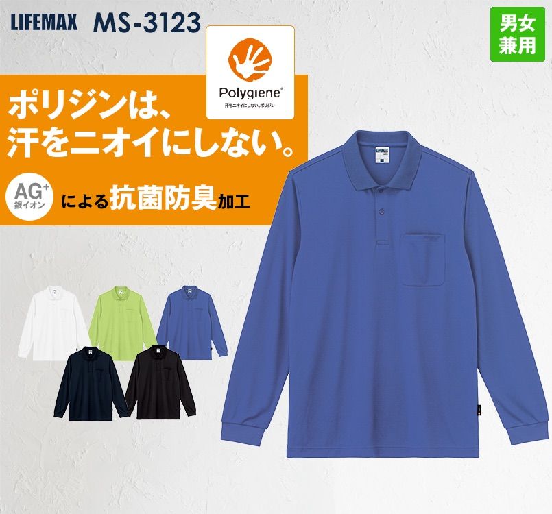 Lifemax MS3123 4.3オンス ドライロングスリーブポロシャツ(ポリジン加工)