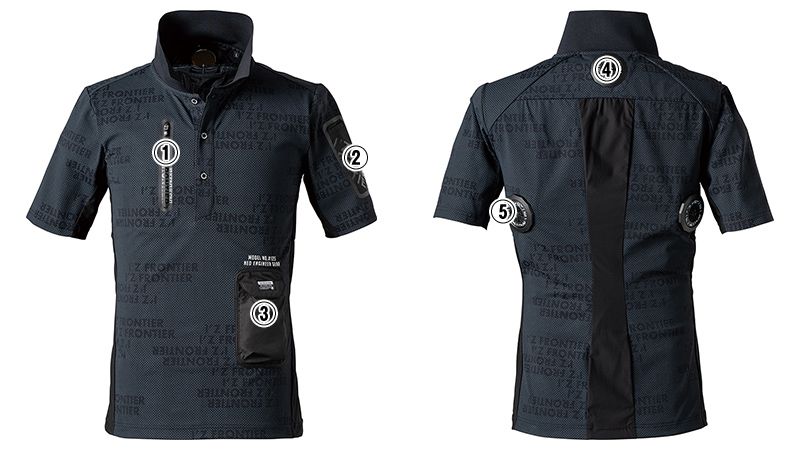 素材 | 本体生地:ポリエステル100% 別布①(脇・背中中心):ナイロン75%/ポリウレタン25% 別布②(バッテリーポケット・ショルダーパーツ):ポリエステル100% 別布③(背面内側):ポリエステル100% |