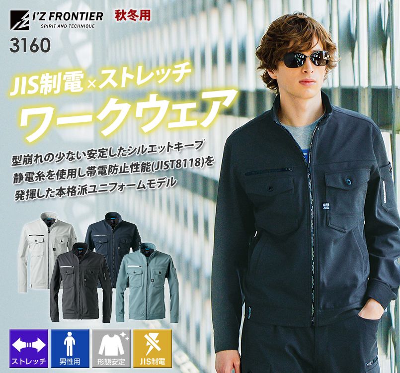 アイズフロンティア 3160 [秋冬用]カットソーA.D.ストレッチワークジャケット[男性用]