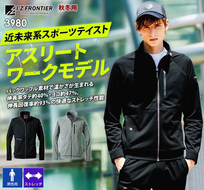 アイズフロンティア 3980 [秋冬用]A.D.ストレッチバックワッフルワークジャケット[男性用]