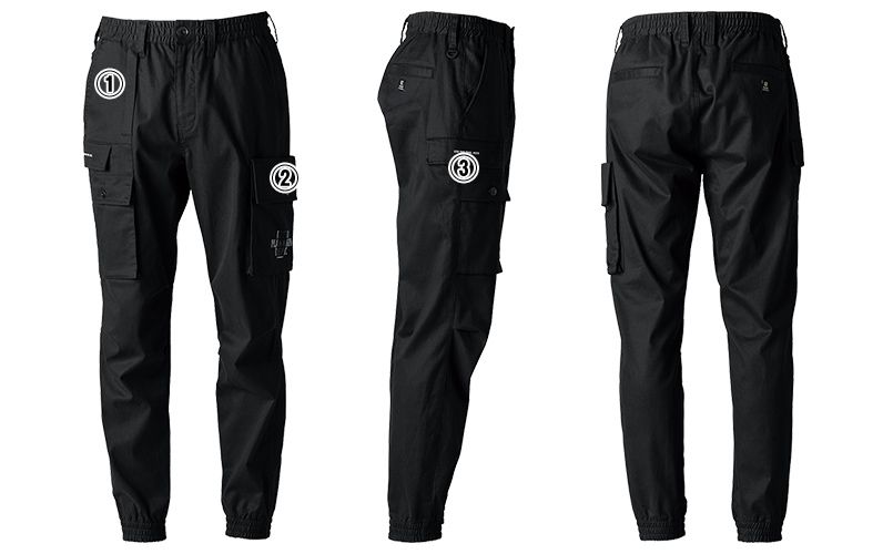 | 仕様 | 右腰ポケット、大型左カーゴポケット、マチ付き大型右カーゴポケット、9個のポケットを搭載、国産YKK社製を使用したドット釦 |