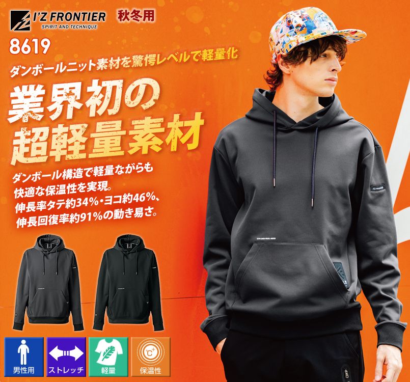 アイズフロンティア 8619 [秋冬用]ライトウェイトストレッチワークフーディー[男性用]
