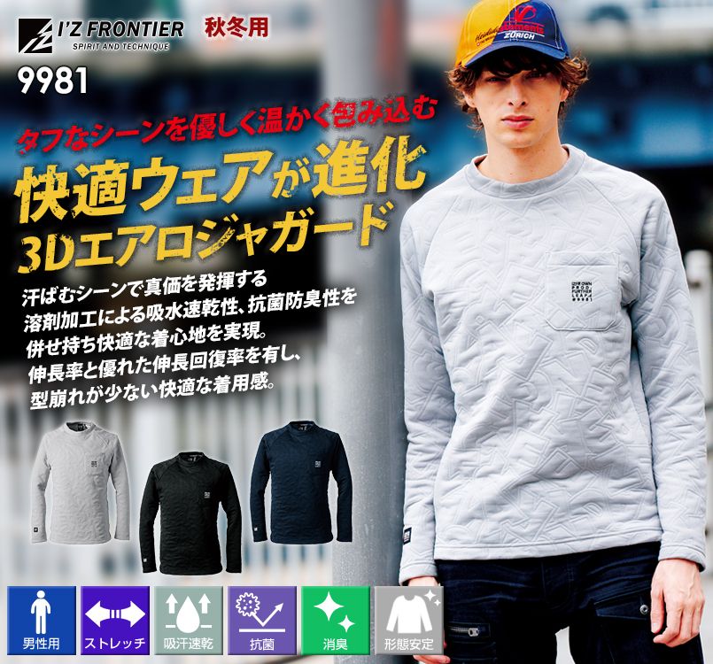 アイズフロンティア 9981 [秋冬用]3Dエアロジャガードストレッチ長袖クルーネックシャツ[男性用]