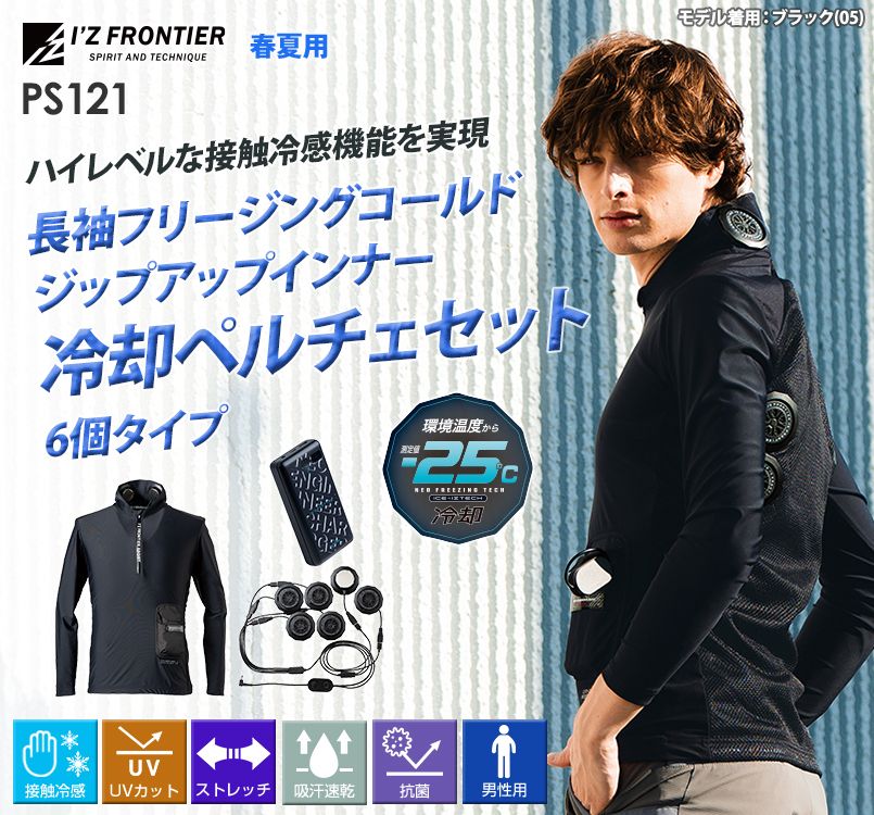 冷却ペルチェ専用 長袖フリージングコールドジップアップ インナー&6個デバイス・バッテリーセット