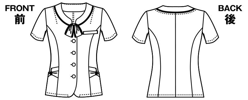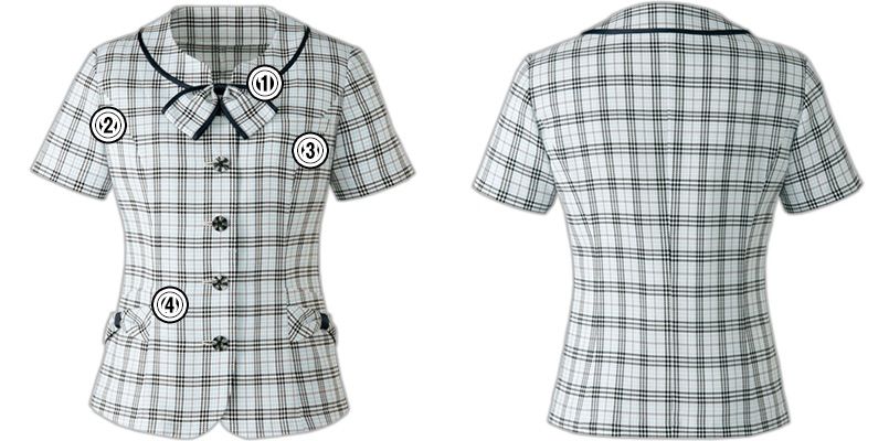 ALPHAPIER(アルファピア)AR1674のライトジャケット。ノーブルで可愛いラウンドノーカラー。爽やかなバスケットチェックです。サテンのトリミングがアクセント。共布のリボンは取り外してもOK。両サイドのスマホホルダーなど機能が充実しています。