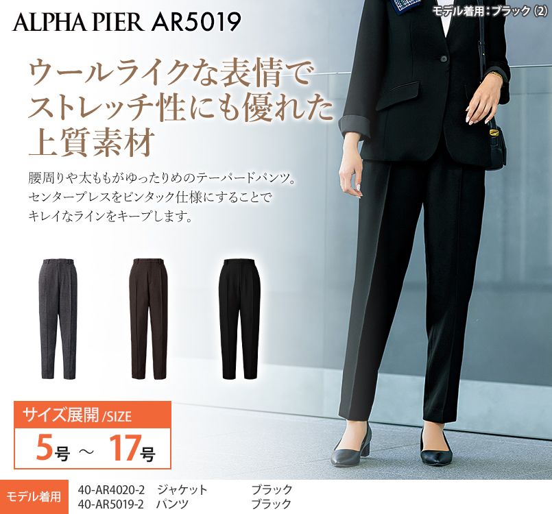 アルファピア AR5019[通年]テーパードパンツ[ウエストゴム/ストレッチ]
