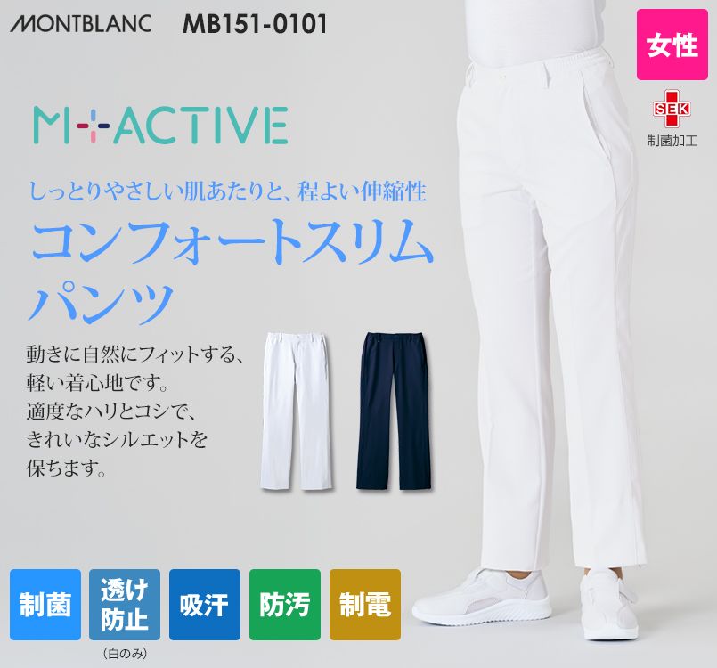 Montblanc MB151-0101 パンツ(ノータック・両脇ゴム)[女性用]
