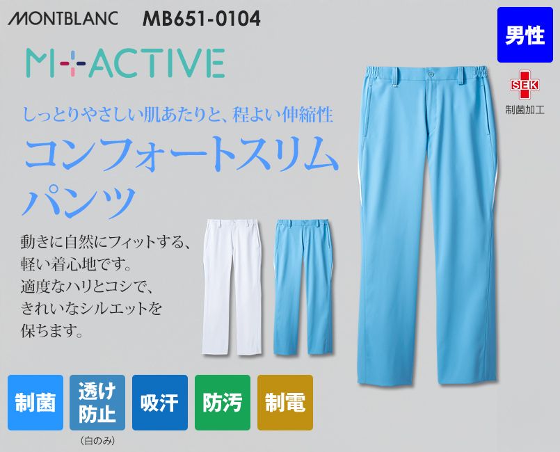 Montblanc MB651-0104 パンツ(ノータック・両脇ゴム)[男性用]