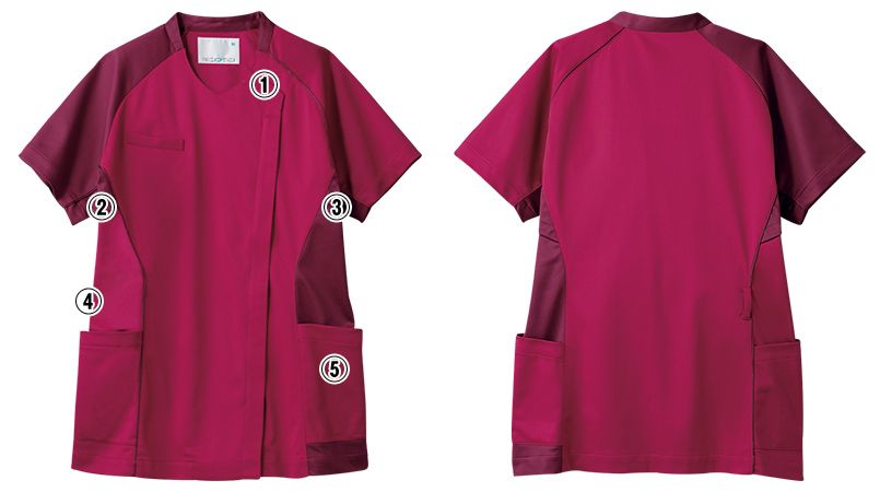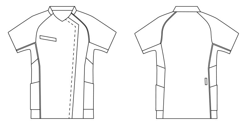 | 仕様 | 肩口スナップテープ仕様、脇下ベンチレーション仕様、パターンデザイン、ウエストループ、内ポケット付き、SEK制菌加工、吸汗速乾、制電、防汚、ストレッチ |