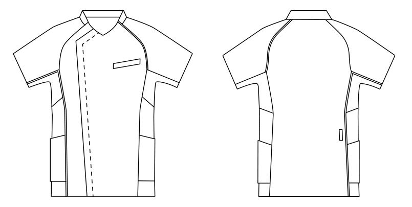 | 仕様 | 肩口スナップテープ仕様、脇下ベンチレーション仕様、パターンデザイン、ウエストループ、内ポケット付き、SEK制菌加工、吸汗速乾、制電、防汚、ストレッチ |