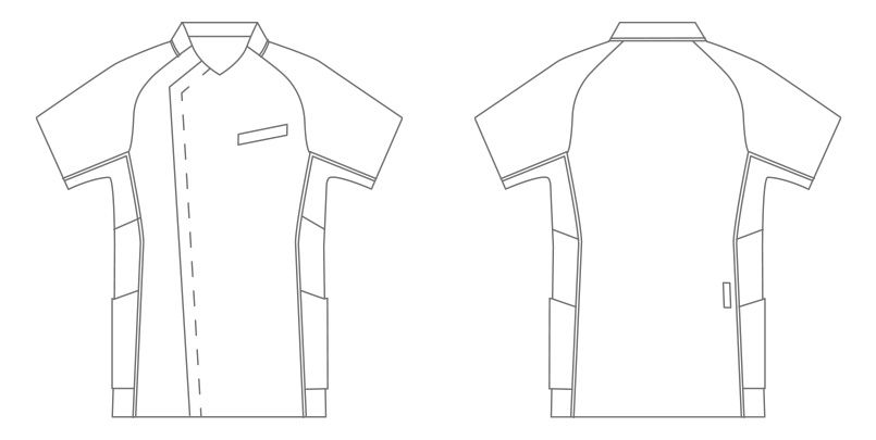 | 仕様 | 肩口スナップ仕様、汗染み防止(デュアルファイン®素材)、パターンデザイン、ウエストループ、SEK制菌加工、吸汗速乾、制電、防汚、ストレッチ |