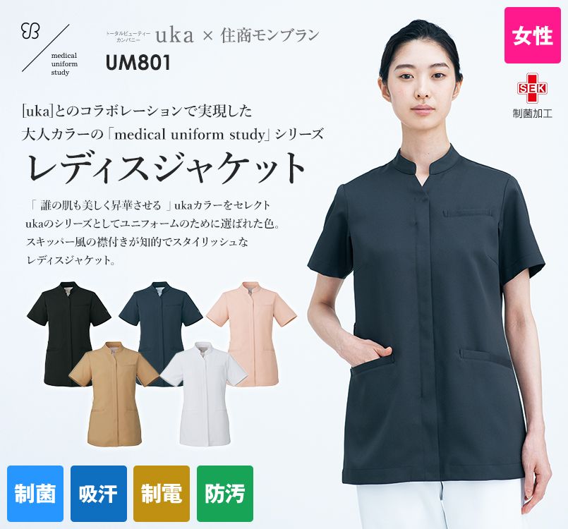 ![Montblanc UM801 uka medical uniform study ジャケット/半袖[女性用] 左袖に生地色と同色の[ukaロゴ]刺繍がさりげないアクセントに](https://img0.land-mark.biz/ut_img/public_images/itempage/raku-raku/detail-column/montblanc/46-UM801-detail-column-02.jpg)