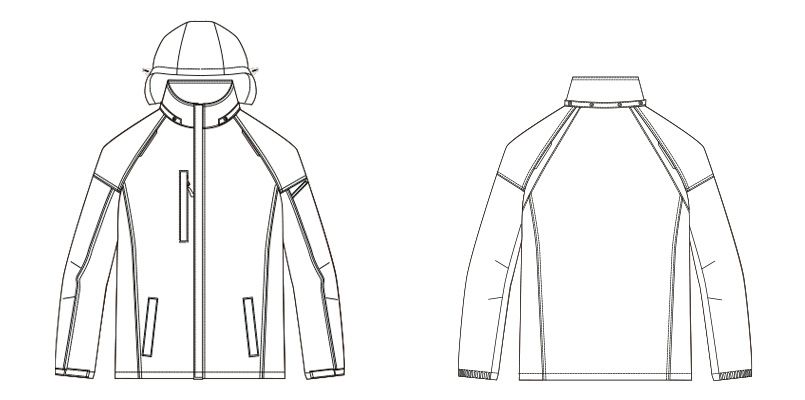前・後身頃の袖ラグラン切替位置に黒反射パイピングを採用し夜間の視認性を確保。
