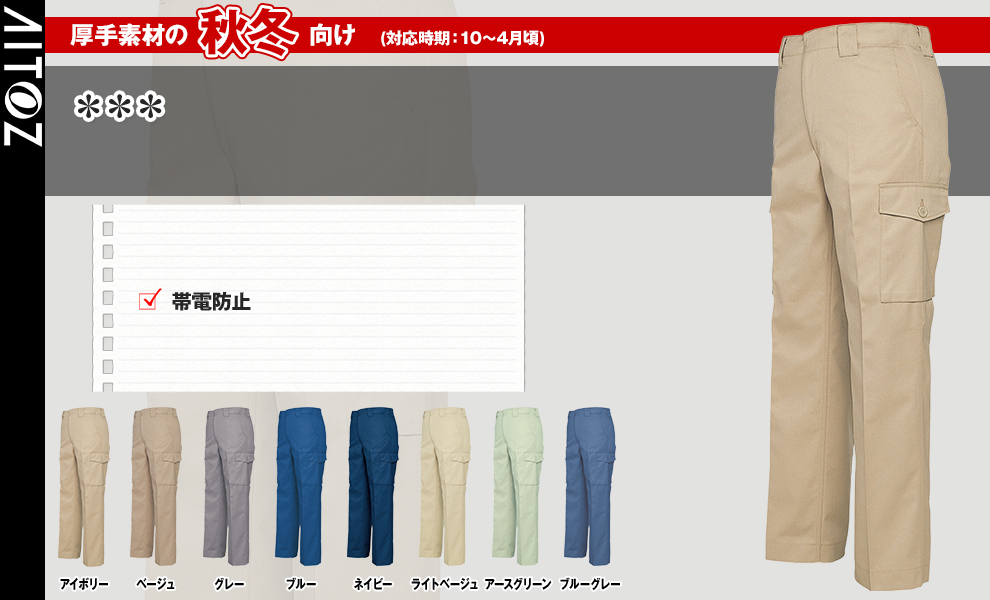 AZ624 アイトス 着働楽 カーゴパンツ 秋冬 通年