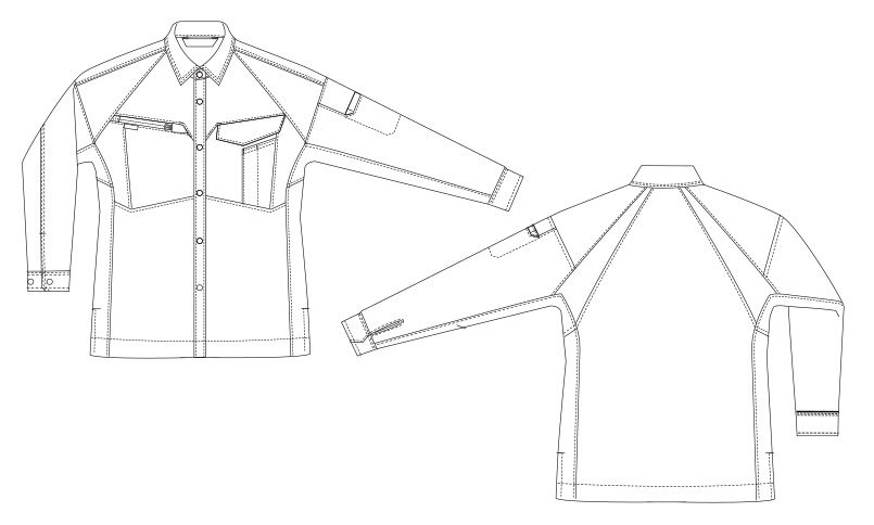 | 仕様 | 右胸ファスナーポケット、左袖ペン差し、左胸IDハンガー、左胸ペン差し、左胸ポケット、ムービンカット、JIST8118適合帯電防止、ストレッチ ドットボタン:プラスチック ポケットファスナー:コイル(スライダー:プラスチック) 裾:ドットボタン付 |