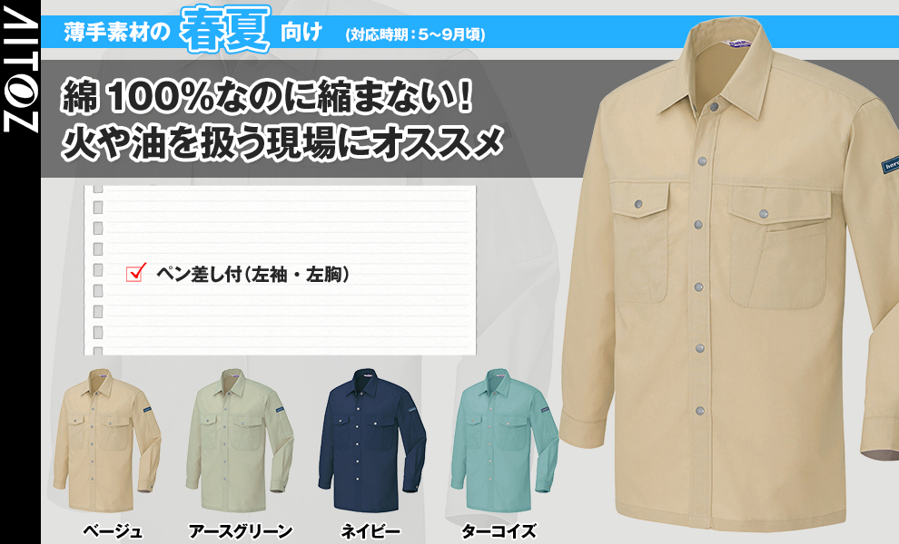 AZ967 アイトス ベストコットン シャツ/長袖(配色なし 薄地) 春夏