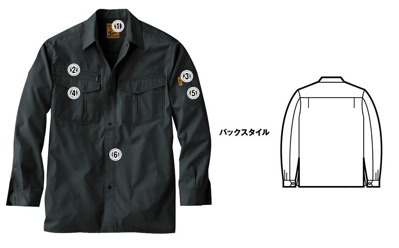 自重堂JAWIN 55204 [春夏用]長袖シャツ。男の色気を感じさせるラフスタイル。ワーキングウェアのファッション性を追求。カジュアルな印象のストライプ柄の素材を使用。着崩してこそ味が出るラフ&クールなスタイル。ユニフォームとしての基本機能もしっかり装備。