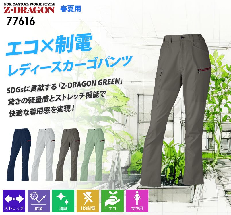 自重堂 77616 [春夏用]Z-DRAGON GREEN エコ製品制電ストレッチレディースカーゴパンツ(裏付)