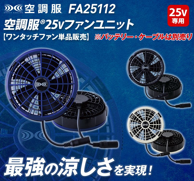 空調服ワンタッチファン 25V超大風量連続モード対応(ファン2個)