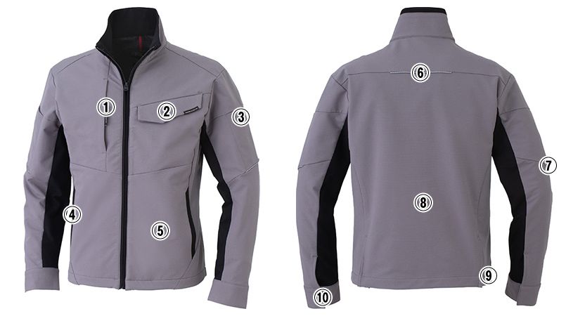 | 仕様 | 野帳も入る縦ポケット、タブレットインポケット、両袖ペン差し、脇ポケット、袖口隠しドットボタン、フラップインポケット、反射素材(両袖・背中)、ボタン・ファスナー樹脂製、JIS T8118適合、帯電防止素材、ストレッチ、反射、UVカット、軽量 左胸ポケット:巾16cm×深さ17cm、右胸縦ポケット:巾14cm×深さ16cm |
