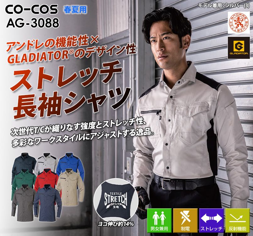 コーコス AG-3088 [春夏用]アンドレスケッティ×グラディエーター ストレッチ 長袖シャツ[男女兼用]