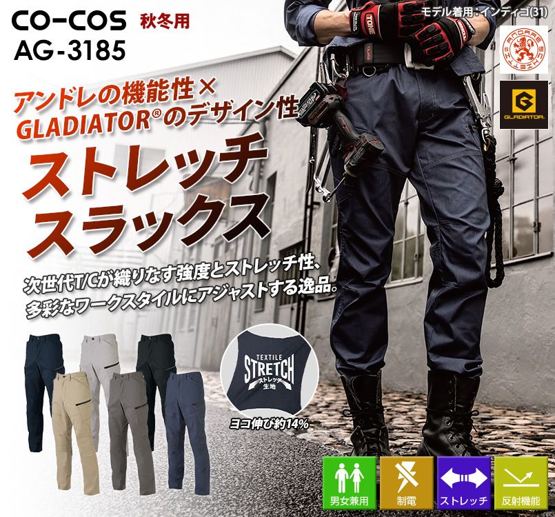 コーコス AG-3185 [通年]アンドレスケッティ×グラディエーター ストレッチ カーゴパンツ[男女兼用]