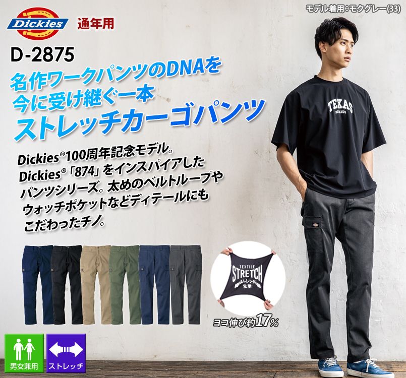 コーコス D-2875 [通年]Dickies T/Cストレッチ オールドスタイル カーゴパンツ[男女兼用]