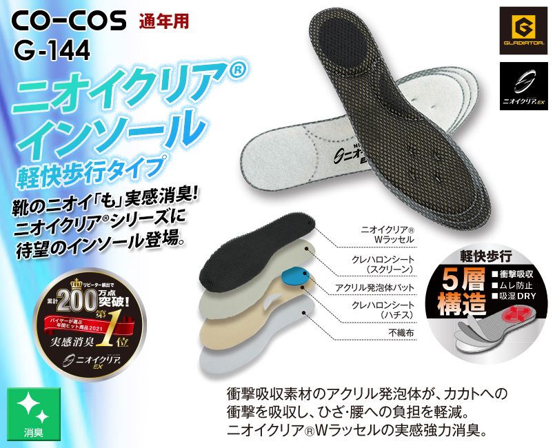 コーコス G-144 [通年]ニオイクリア インソール 軽快歩行タイプ