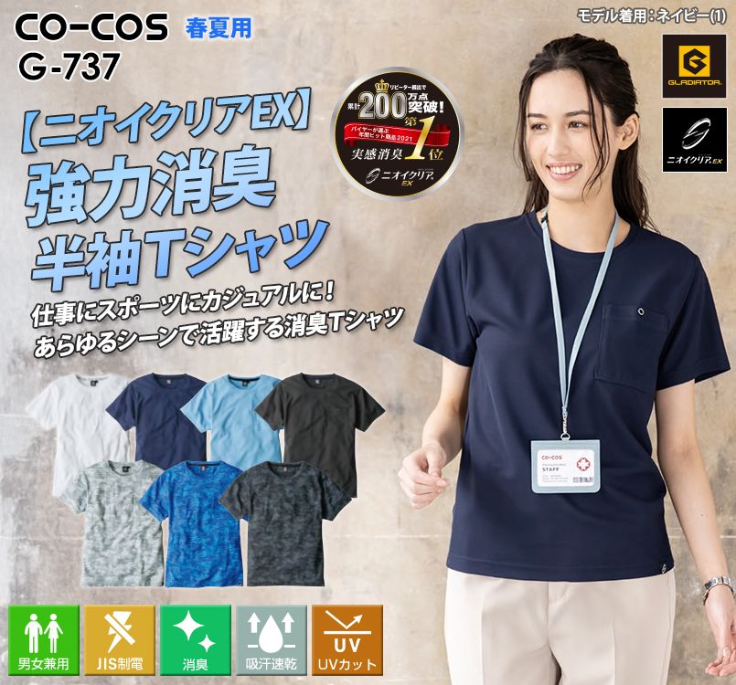 コーコス G-737 [春夏用]ニオイクリア 消臭半袖Tシャツ[男女兼用]