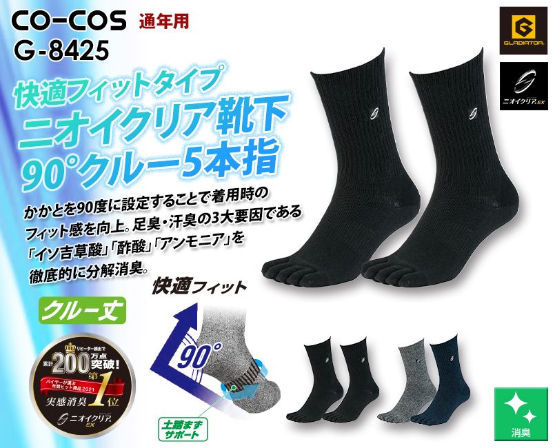 コーコス G-8425 [通年]ニオイクリア 90°クルー5本指2P