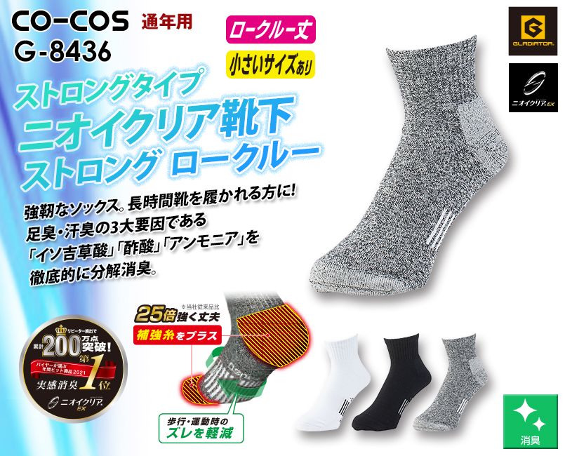 コーコス G-8436 [通年]ニオイクリア ストロングロークルー2P[男女兼用]