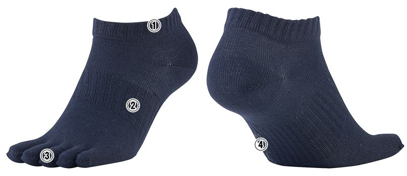 | 仕様 | ショート丈、土踏まずサポート、5本指、ジャガードロゴ入り |