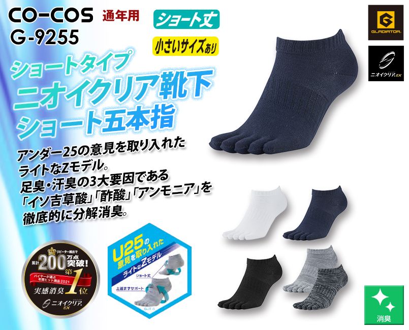 コーコス G-9255 [通年]ニオイクリア ショート五本指2P[男女兼用]
