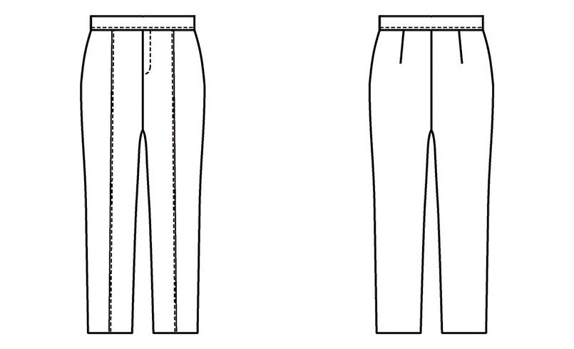 ニットパンツながら、センターライン入りできちんと感を演出できます。スリムなストレートシルエットと併せて、脚長効果も期待できます。