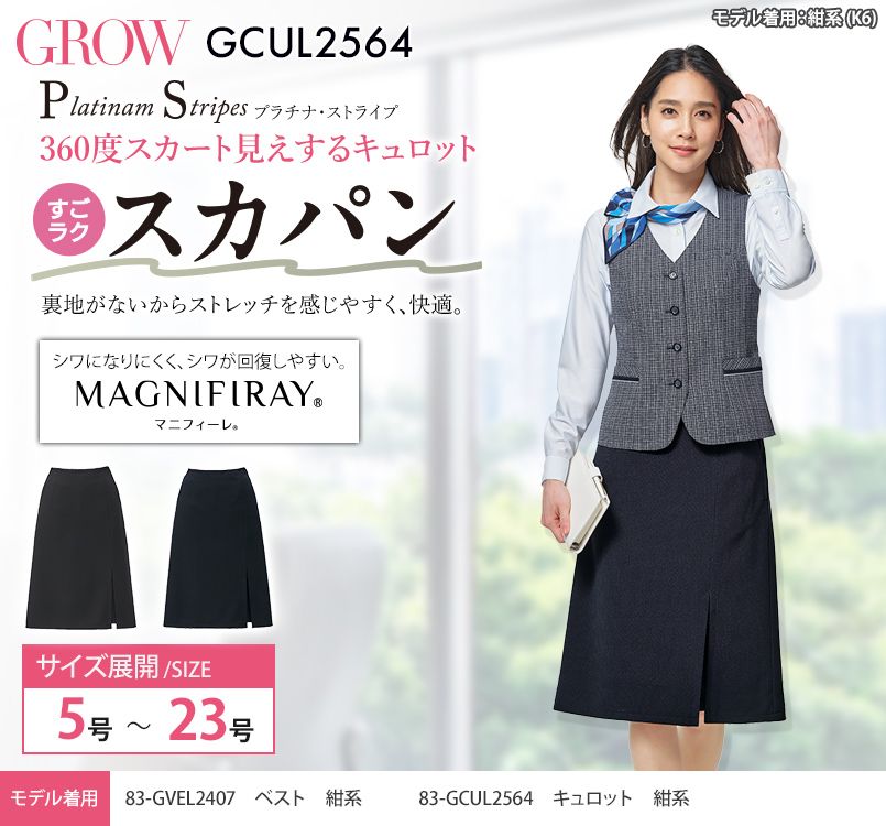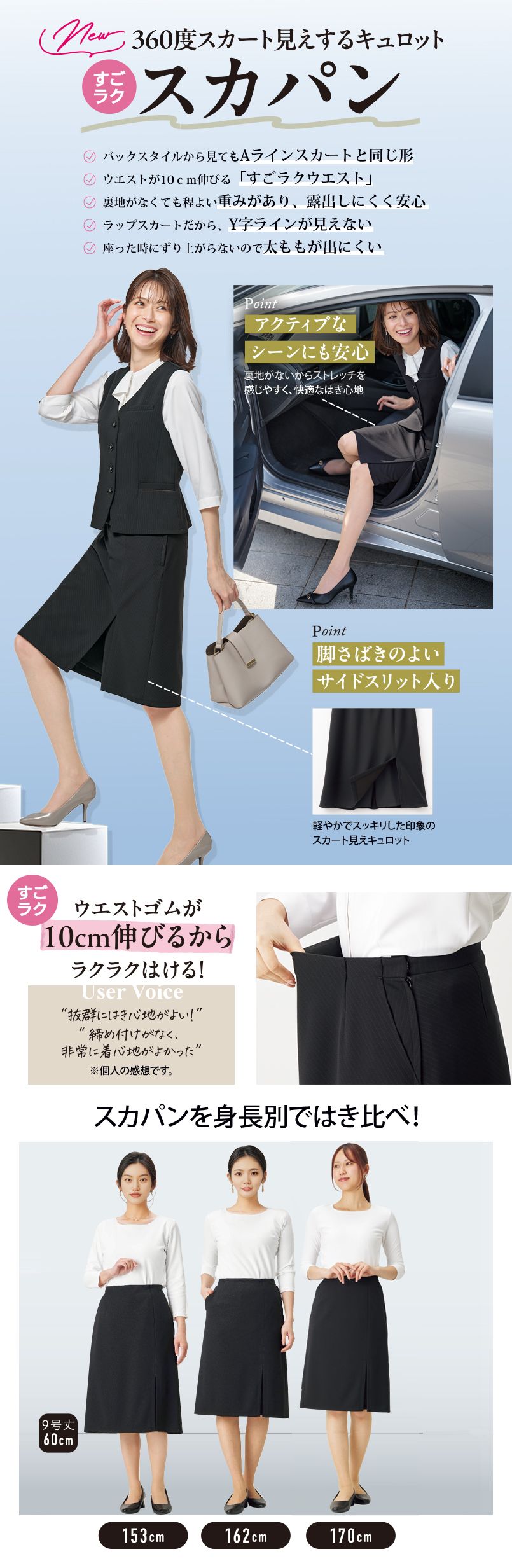 脚さばきのよいサイドスリット入り。軽やかでスッキリした印象のスカート見えキュロット