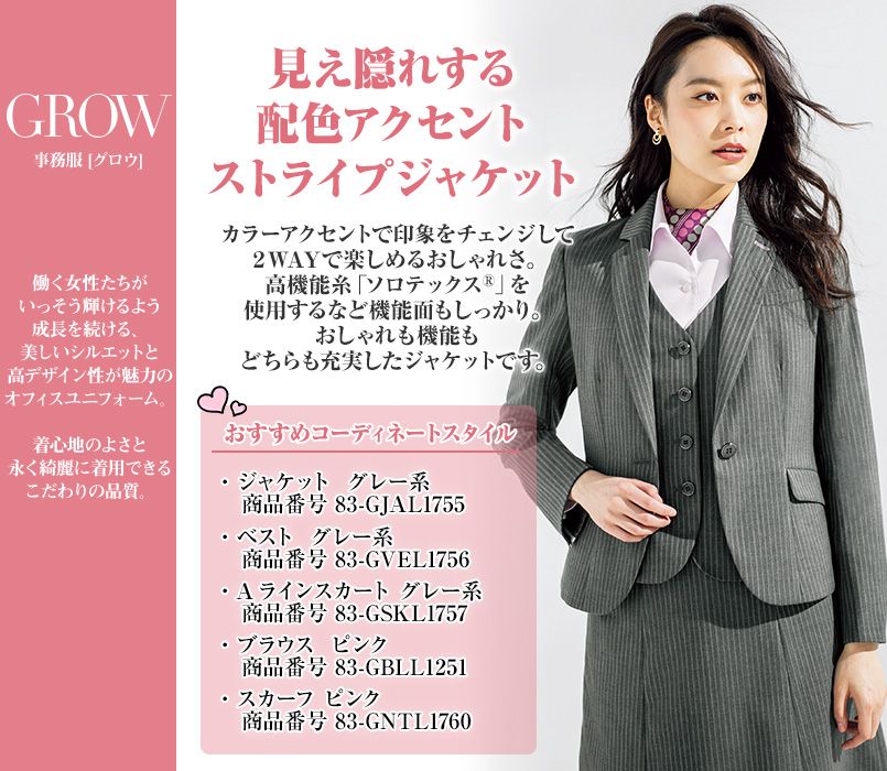GJAL1755 Grow(グロウ) ジャケット ツイン・カラードストライプ